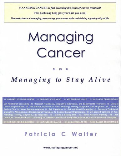 Managing cancer is fast becoming the focus in the media and medical literature. This first-of-its-kind, 400-page, easy-to-use resource offers a strategic, effective plan for patients who are managing cancer, so they can manage to stay alive. The information in this book comes from 6 years' worth of conversations with patients and families along with government research, showing that patients who actively manage their cancer have the best chance of a cure and of a good quality of life.